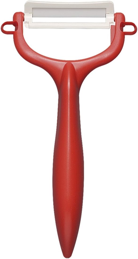 Colorful Kitchen Series: Handle colors are available in 6 colors, colorful and cute. For a clean white blade. The bright coloring will make your kitchen look gorgeous. T-shaped peeler The handle is easy to grip so it is easy to remove. Can be used by left handed people. Basic Ceramic Peeler Features: 1) Lightweight, sharp and clean cutting 2) Long lasting sharpness 3) No rust 4) Keep moisture away from food