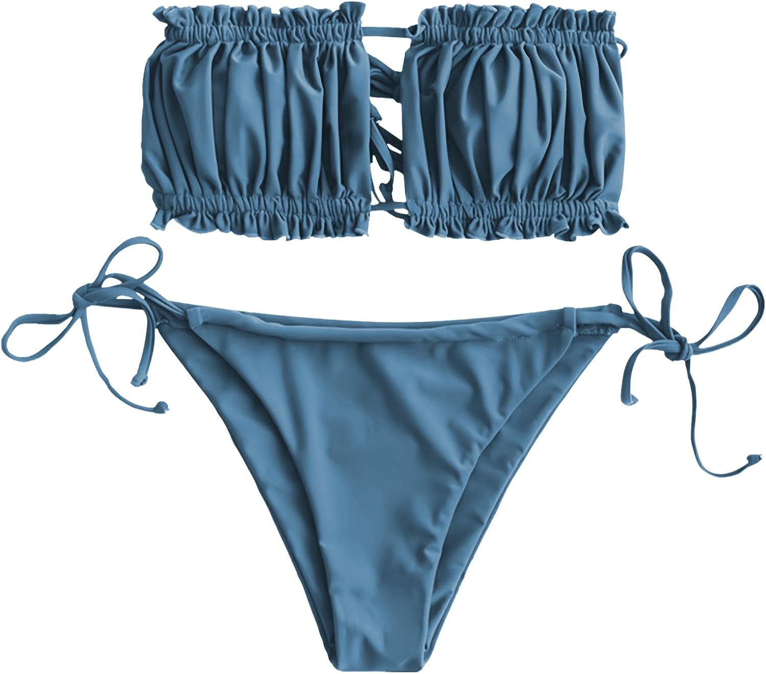 Size Measurment: S (US 4): Bust 86cm/33.86'' ---- Waist 68cm/26.77'' ---- Hips 92cm/36.22'' M (US 6): Bust 90cm/35.43'' ---- Waist 72cm28.35'' ---- Hips 96cm/37.80'' L (US 8): Bust 94cm/37.01'' ---- Waist 76cm/29.92'' ---- Hips 100cm/39.37'' Instruction: There may be 1 - 3cm differ due to manual measurement. Please choose the right one according to your actual situation. Product details: Style: Sexy Swimwear Type: Bikini Bikini Type: Bandeau Bikini Gender: For Women Material: Nylon,Spandex Bra Style: Padded Support Type: Wire Free Collar-line: Strapless Pattern Type: Solid Decoration: Ruffles Waist: Low Waisted Weight: 0.2200kg Package: 1 x Bra, 1 x Briefs Style and Fit Disclaimer: We can guarantee that the overall style displayed in the photography is accurate, however there may be differences in how the style appears during wear. This depends on other physical variables, e.g. personal body size, body shape, limb proportion, height, etc.