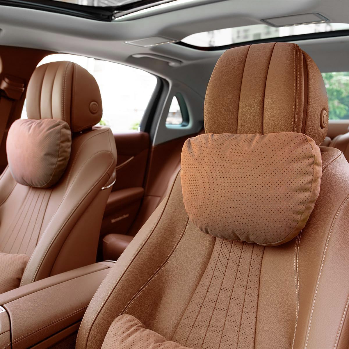 Specifications: Material: Suede+DuPont Sorona Color: Light brown/Dark brown/Grey blue/Athens black/Bright orange/Bordeaux red/Macchiato Beige Size: 30cm*24cm*12cm Weight: 0.7KG Package Include: 2 x Car Neck Pillow
