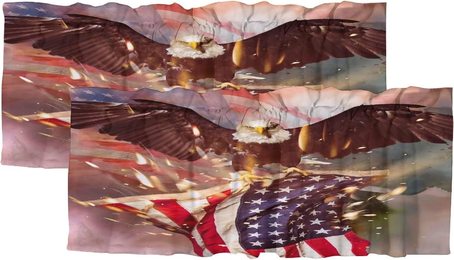 This American Flag Eagle curtain drape blocks Semi-blocking light and UV rays, perfect for late sleepers and nappers. Our energy-efficient curtains insulate against summer heat and winter chill, balancing your room temperature and reducing outside noise.These American Flag Eagle curtains give your indoor or outdoor space an airy and beautiful feel.These curtains are suitable for bedrooms, living rooms, dining rooms, nurseries, children's rooms, offices or other public places.Kindly remind:- Do not scratch the curtains with sharp objects.- For proper fullness, the panel should be slightly larger than the width of your window.- 24-hour customer support.- The color of the actual item may differ slightly from the above image due to different computer display colors.