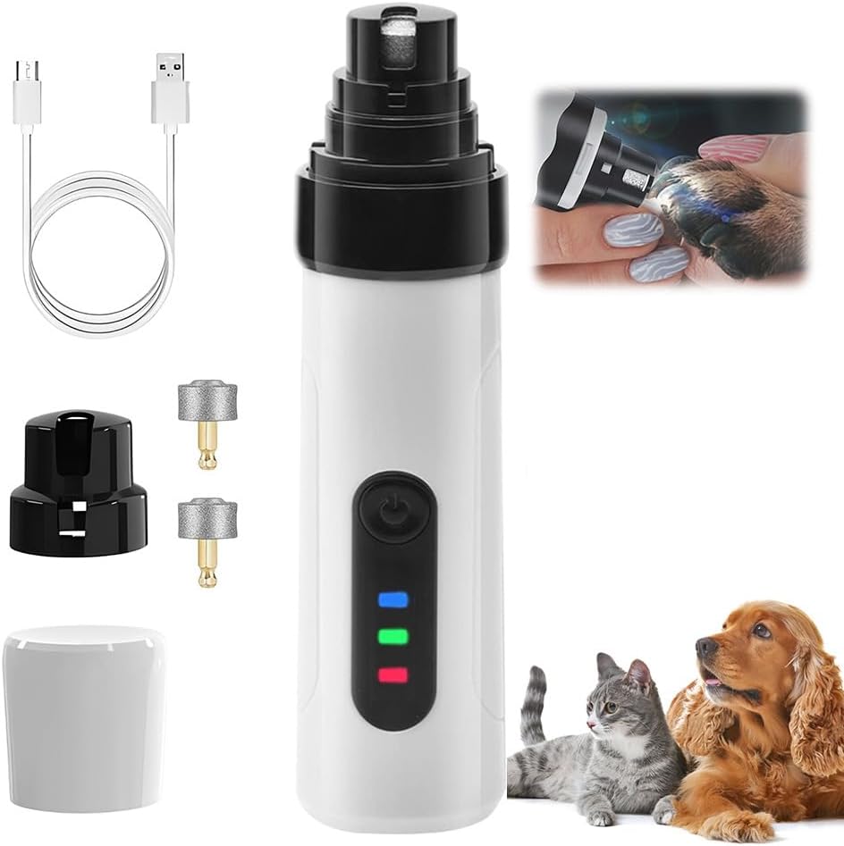 Product Description:Product Name: Dog nail trimmers pets nail grinder for dogs quietSize: 13.8*3.2*2 cm / 5.43*1.25*0.78 inDesign: USB rechargeable, two speed settingsFeatures:Low Speed 5000 rpm, High Speed 7000 rpmOur nail grinder for dogs quiet, with 3 ports, suitable for all petsNo more awkward angles or struggling with manual clippers.Unlike traditional pets nail clippers that can dull over time, our grinder maintains its effectiveness with consistent use.Pet nail grinder for dogs, the sturdy design not only enhances the product's lifespan but also makes safety during operation.The gentle vibration and low noise level help create a soothing environment, making it easier for anxious animals to accept the grooming process.The lower speed is ideal for nervous pups who may be apprehensive about nail trimming, while the higher speed suits more experienced pets.Experience the convenience of our fully automatic pet nail grinder.The ergonomic design fits comfortably in your hand, providing excellent control.
