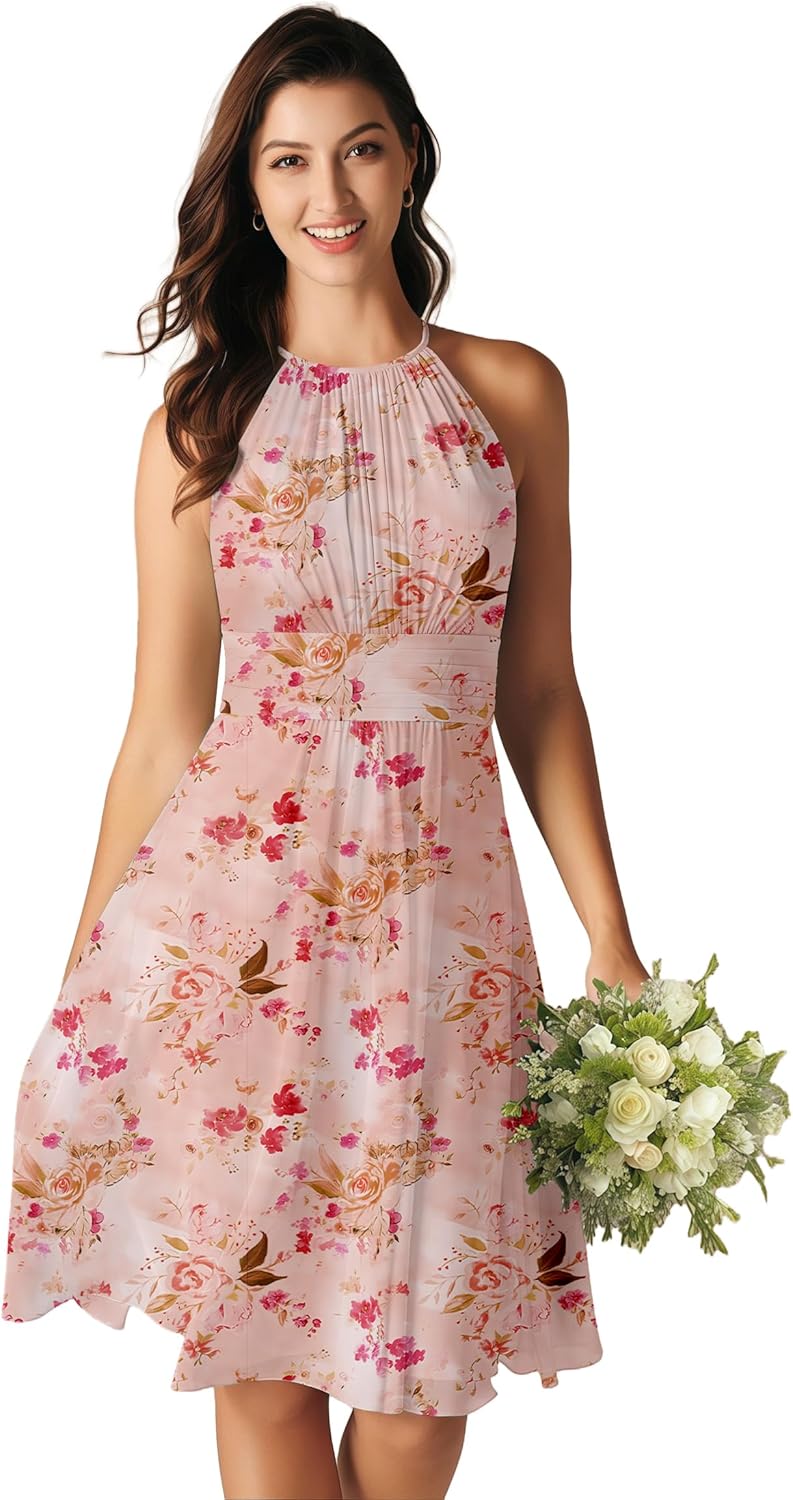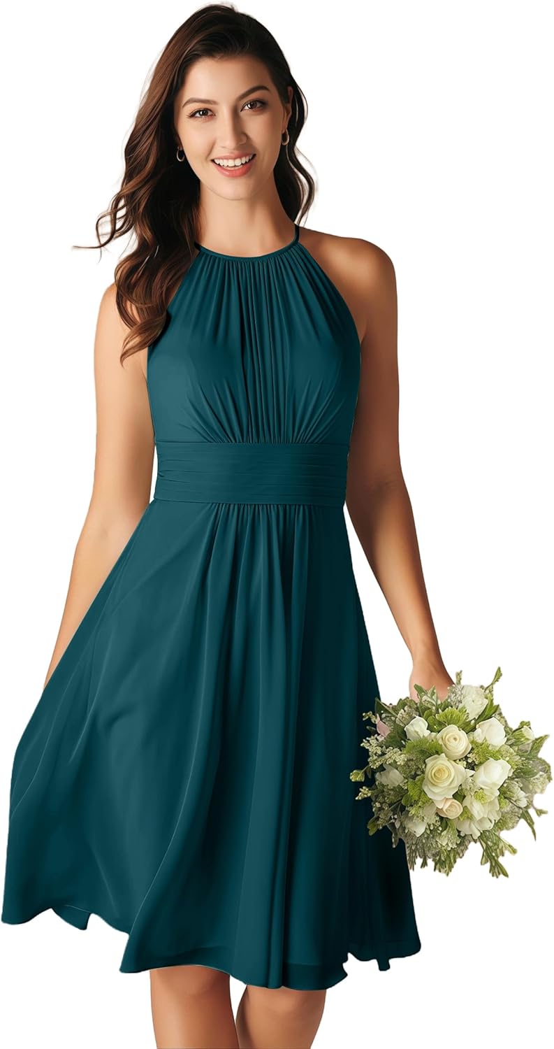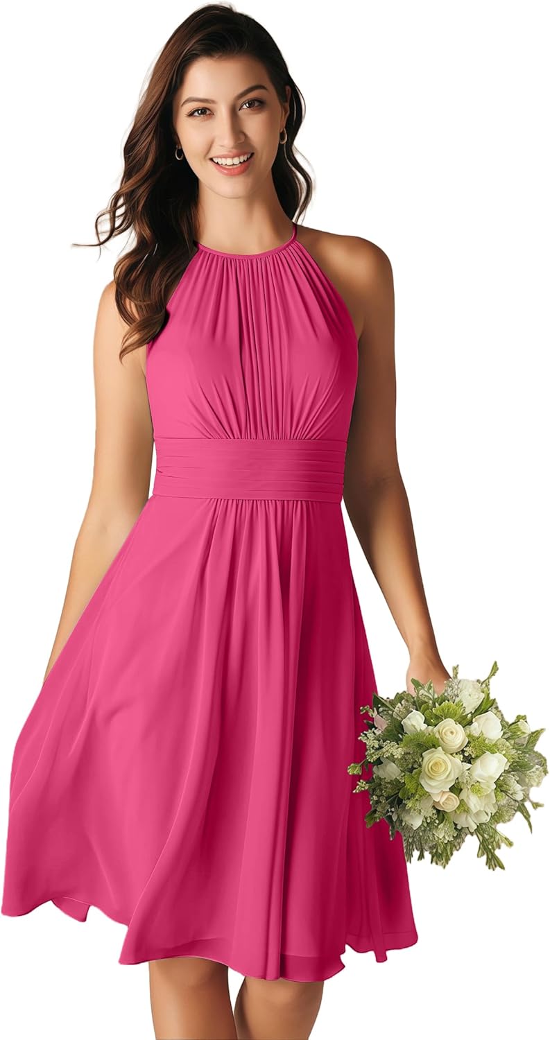 | Occasion Type | chiffon maid of honor dress, chiffon short bridesmaid dress, chiffon short wedding guest dress, halter short formal dress, short bridesmaid dress |