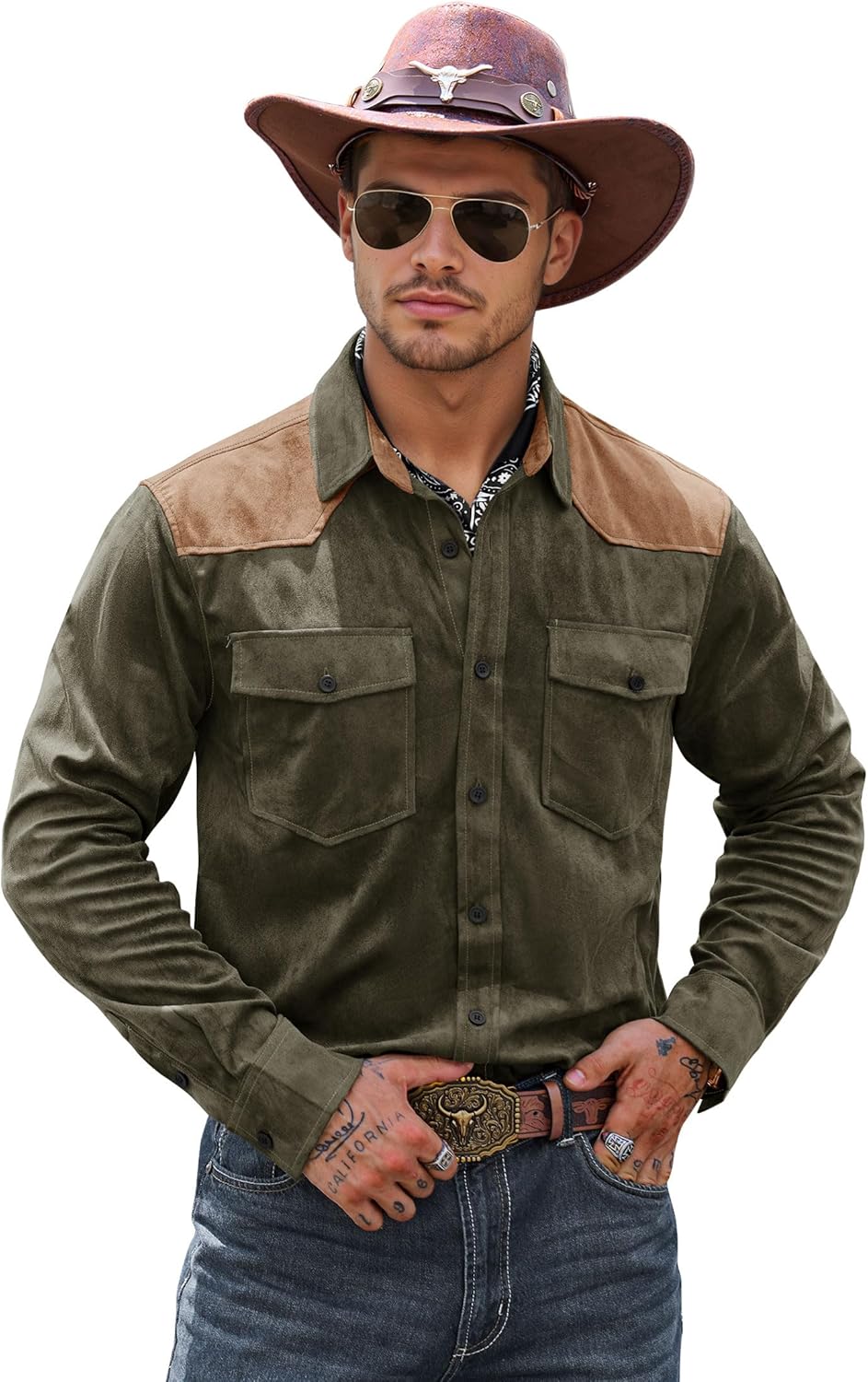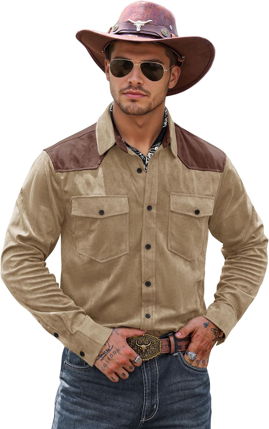 Introducing the Herberton Men's western cowboy shirt jacket, where classic cowboy style meets contemporary comfort. This versatile piece is your go-to layer for creating standout casual looks this fall. Made from a premium lightweight blend with added stretch, this shirt jacket offers a soft feel and a comfortable, movement-friendly fit. The regular-to-slim fit design ensures a sharp, modern silhouette that pays homage to vintage western wear. Attention to detail makes all the difference. From the authentic button-down front and collared design to the functional chest pockets and distinctive color block panels on the shoulders and back, every element is crafted for style and function. Take only a few seconds to find your size according to our size chart below. If you have any dissatisfaction or questions about our products, please don't hesitate to contact us, the Herberton support team will respond to you any time.